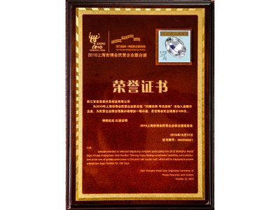 2010上海世博會民營企業(yè)聯(lián)合館榮譽(yù)證書